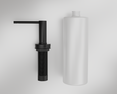 Dozownik do płynu z obrotowym aplikatorem. Wysokość aplikatora płynu 7cm. Wysokość pojemnika 21 cm (pod blatem). Pojemność: 300 ml.